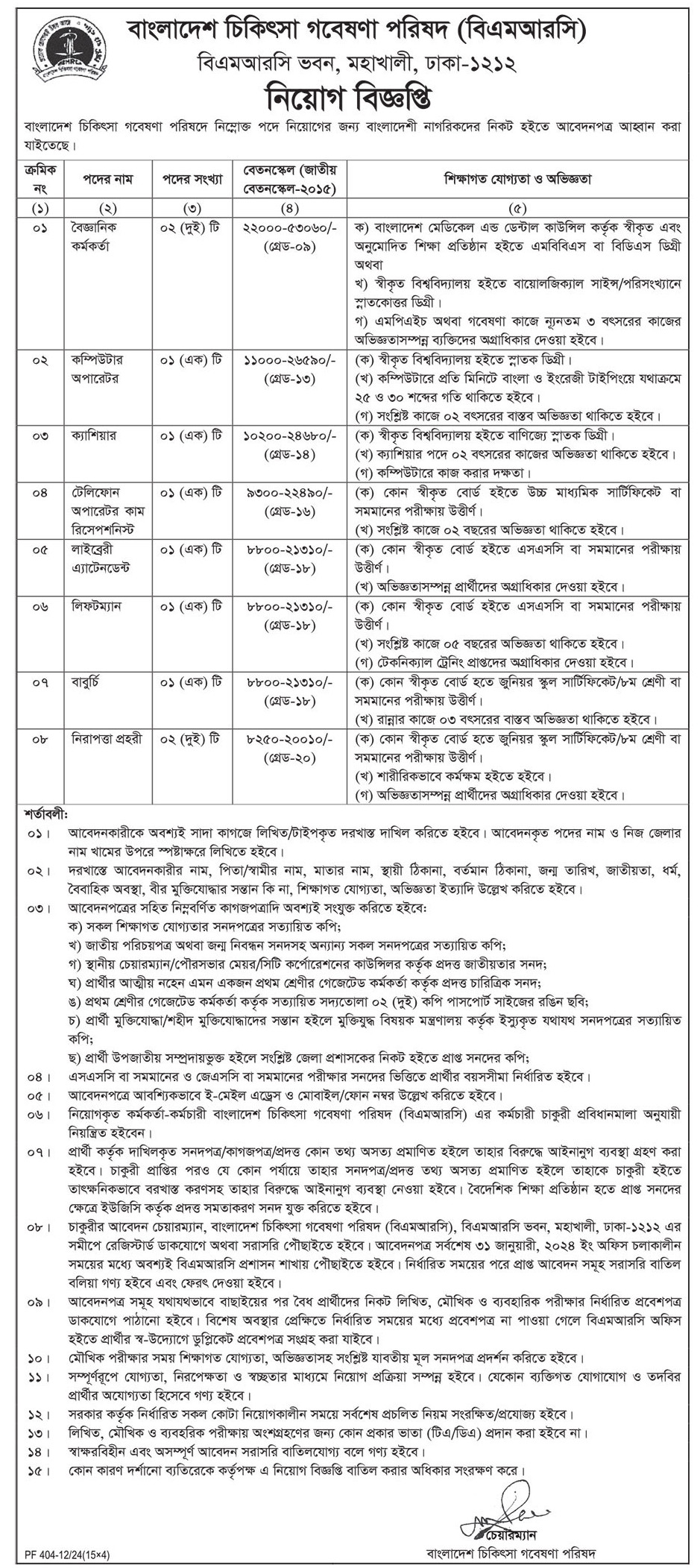 Bangladesh Medical Research Council BMRC published its new job circular 2024 for various posts including cashier. Candidates must submit a written/typed application on white paper, the name of the post applied for and the name of their district should be written clearly on the envelope. As the new job circular is published it is very happy news to process the application as per the rules of the circular, all the application rules are specially provided here for everyone’s convenience. So without delay quickly know about Bangladesh Medical Research Council BMRC Recruitment from our website.